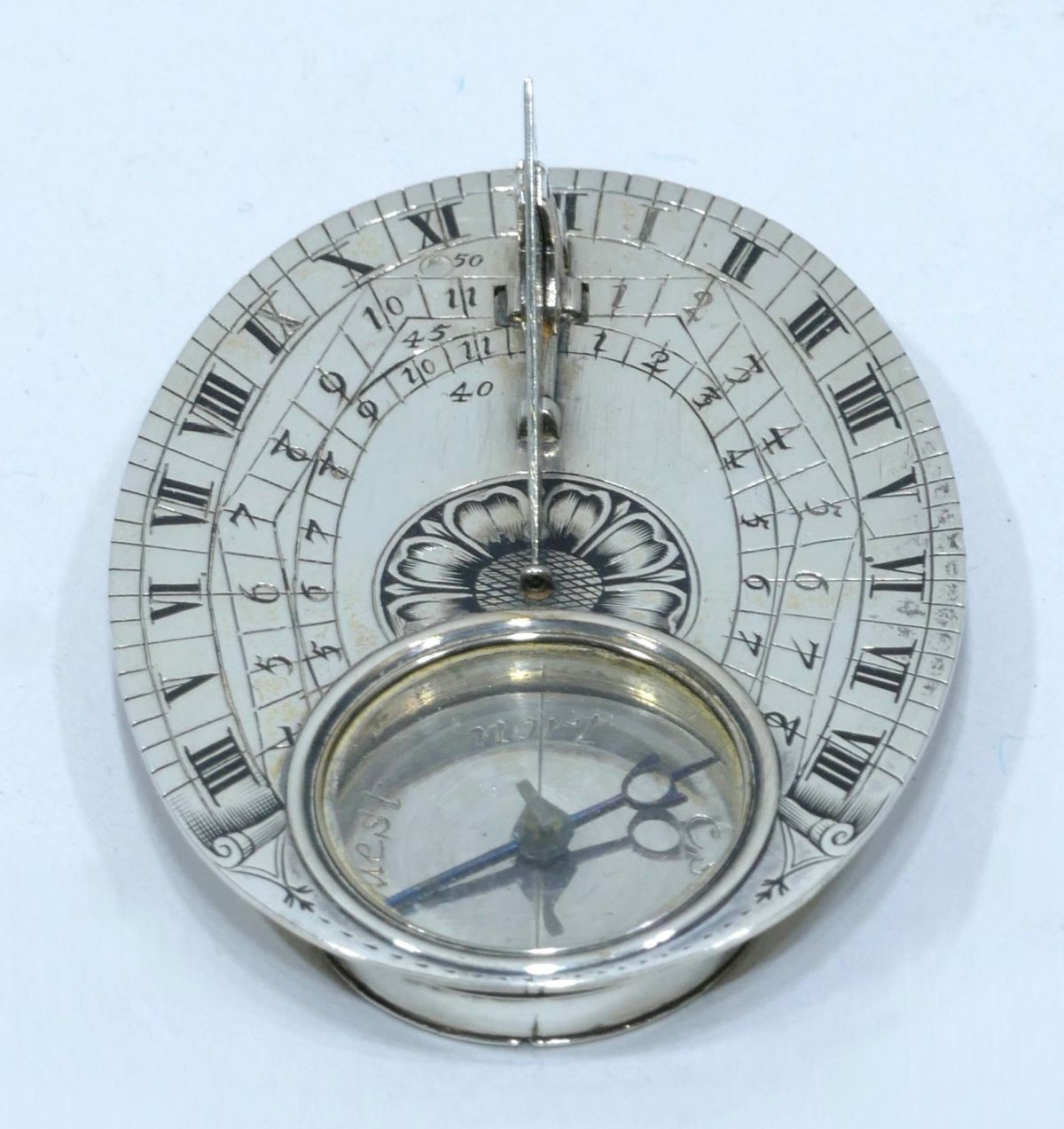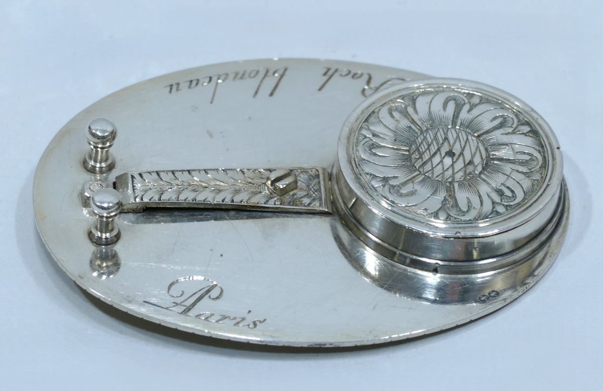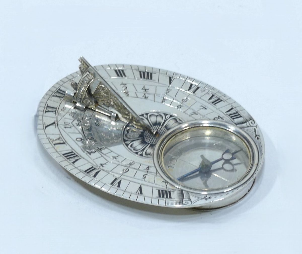 Oval silver sundial signed “Roch Blondeau AParis”.