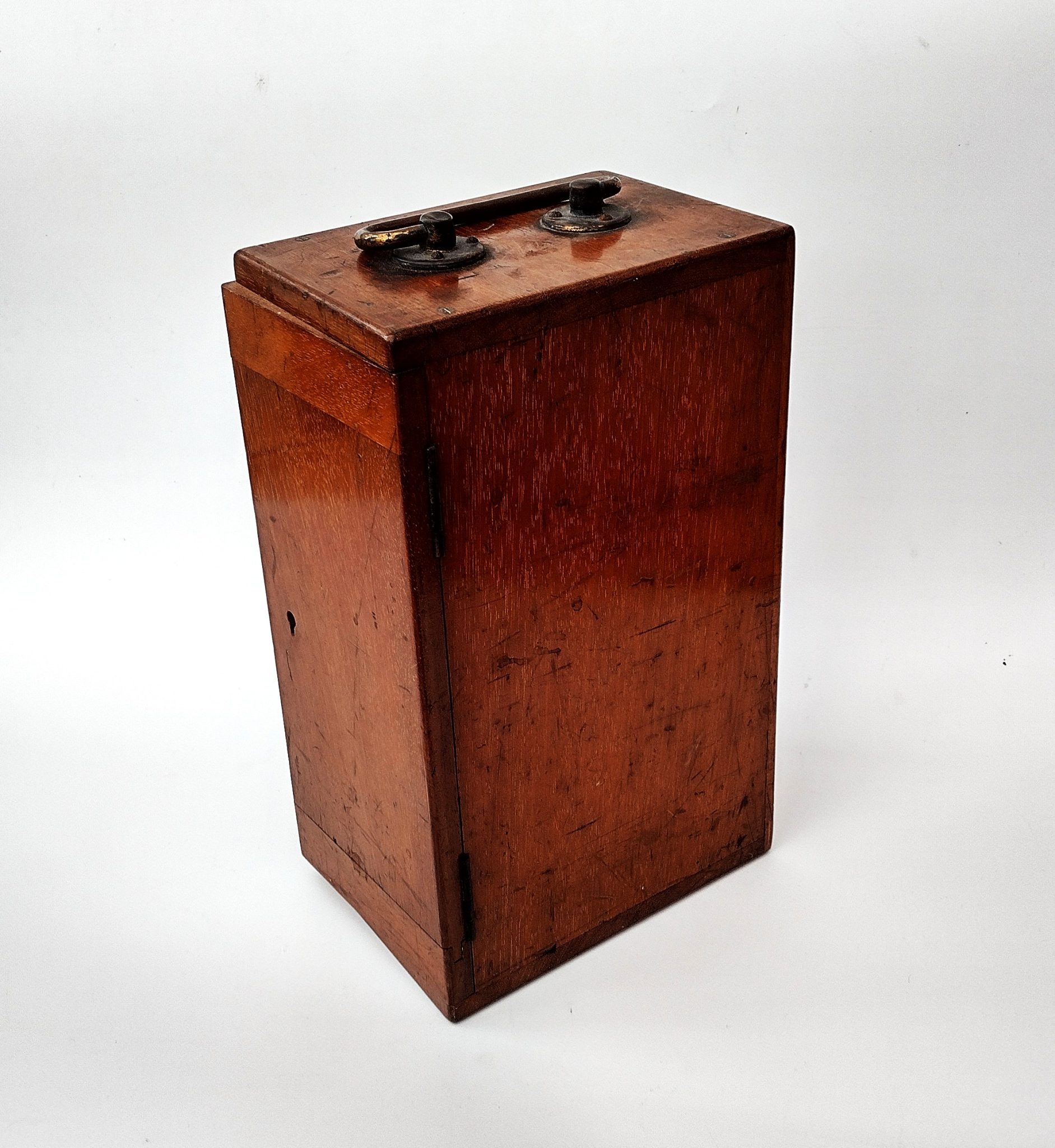 A very clean example. In mahogany case with lock (no key) and brass handle.