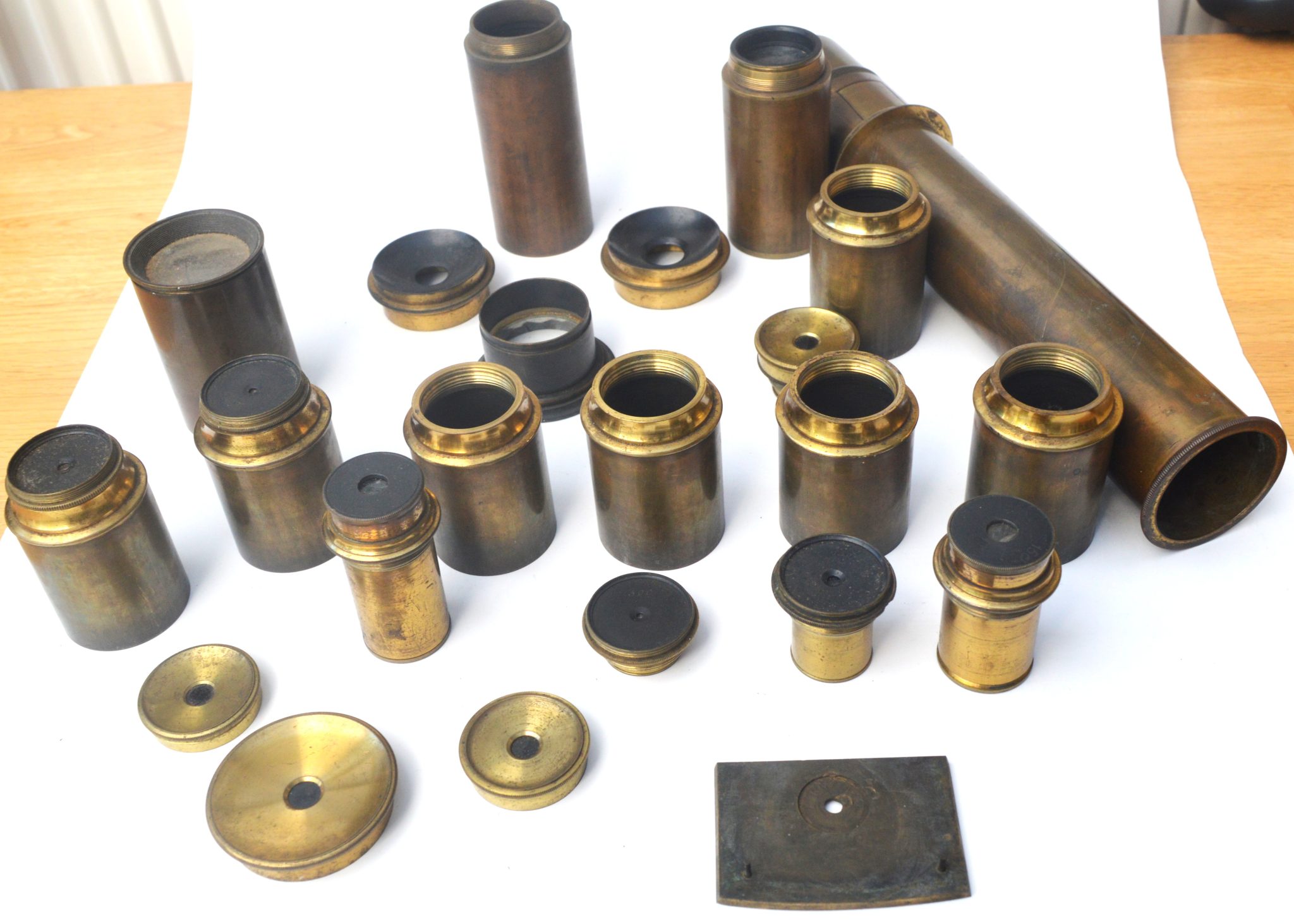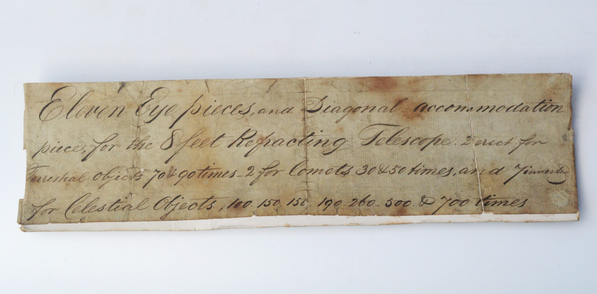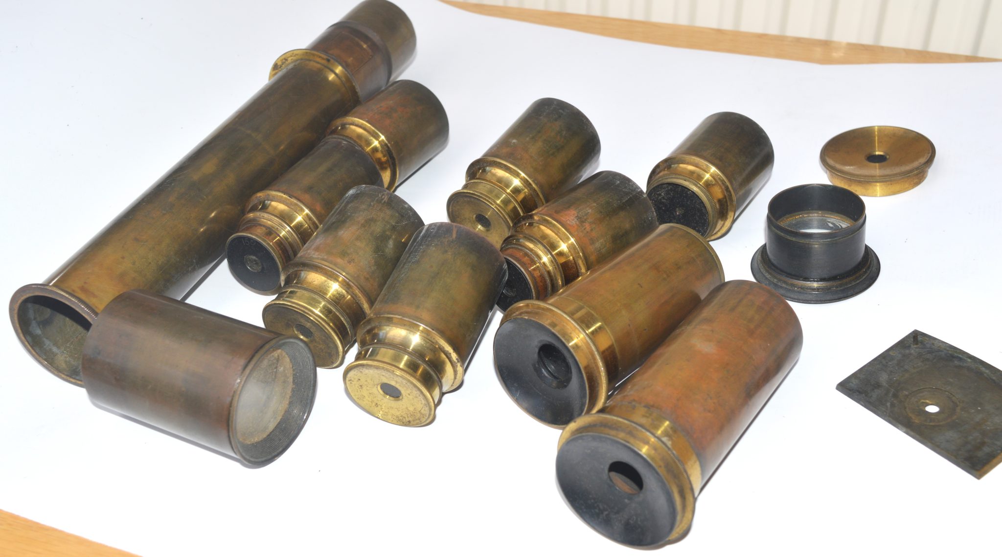 SOLD – A set of lenses in a mahogany case. An old written note to say ‘ ……….. for the eight feet refracting telescope’.