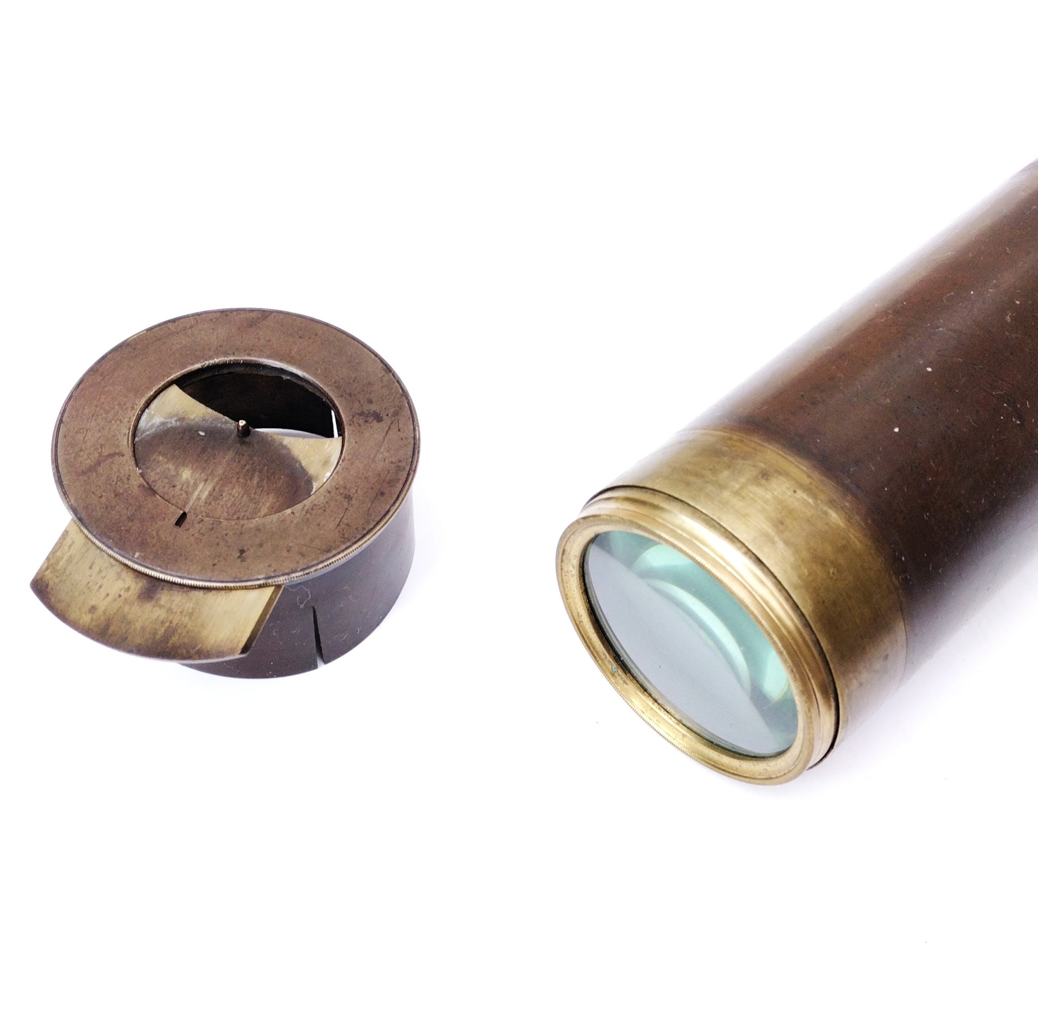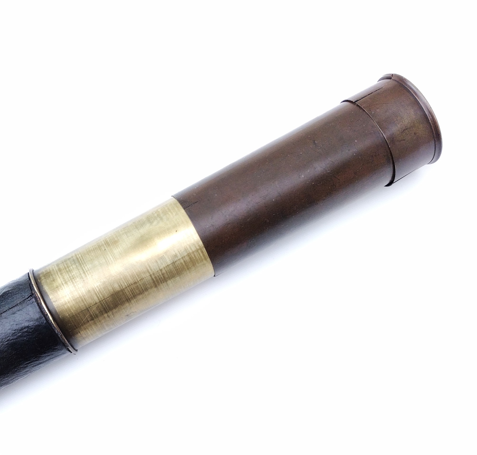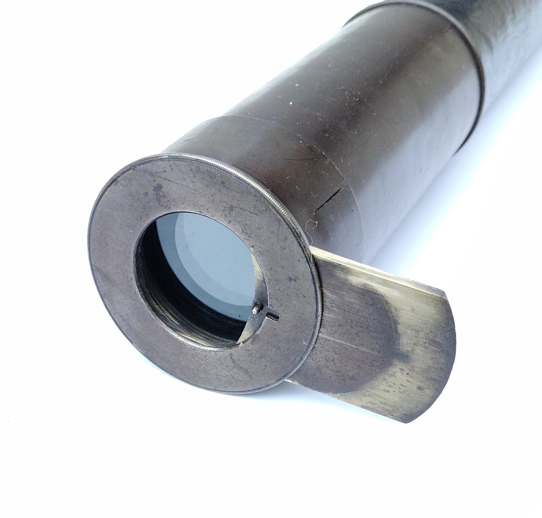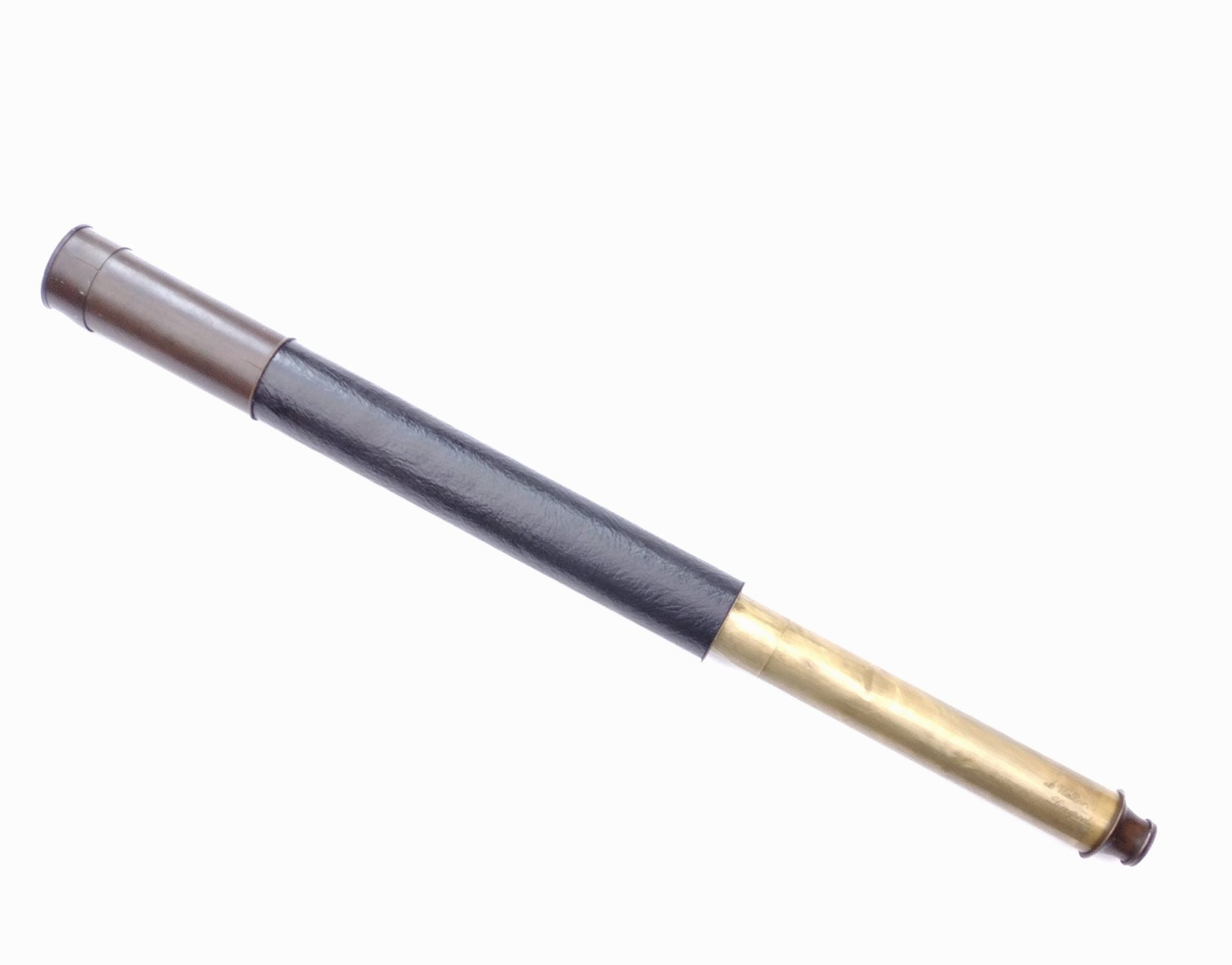 A single draw marine telescope measuring 21″ when closed and 38″ when fully open. It has a crown / flint objective glass of 48 mm diameter and there are protective sliders to each end.