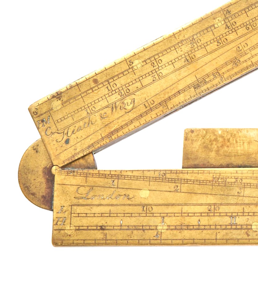 SOLD – Circa 1760, signed Heath & Wing, London, engraved on both faces with linear and non-linear scales 15cm (6in) radius.