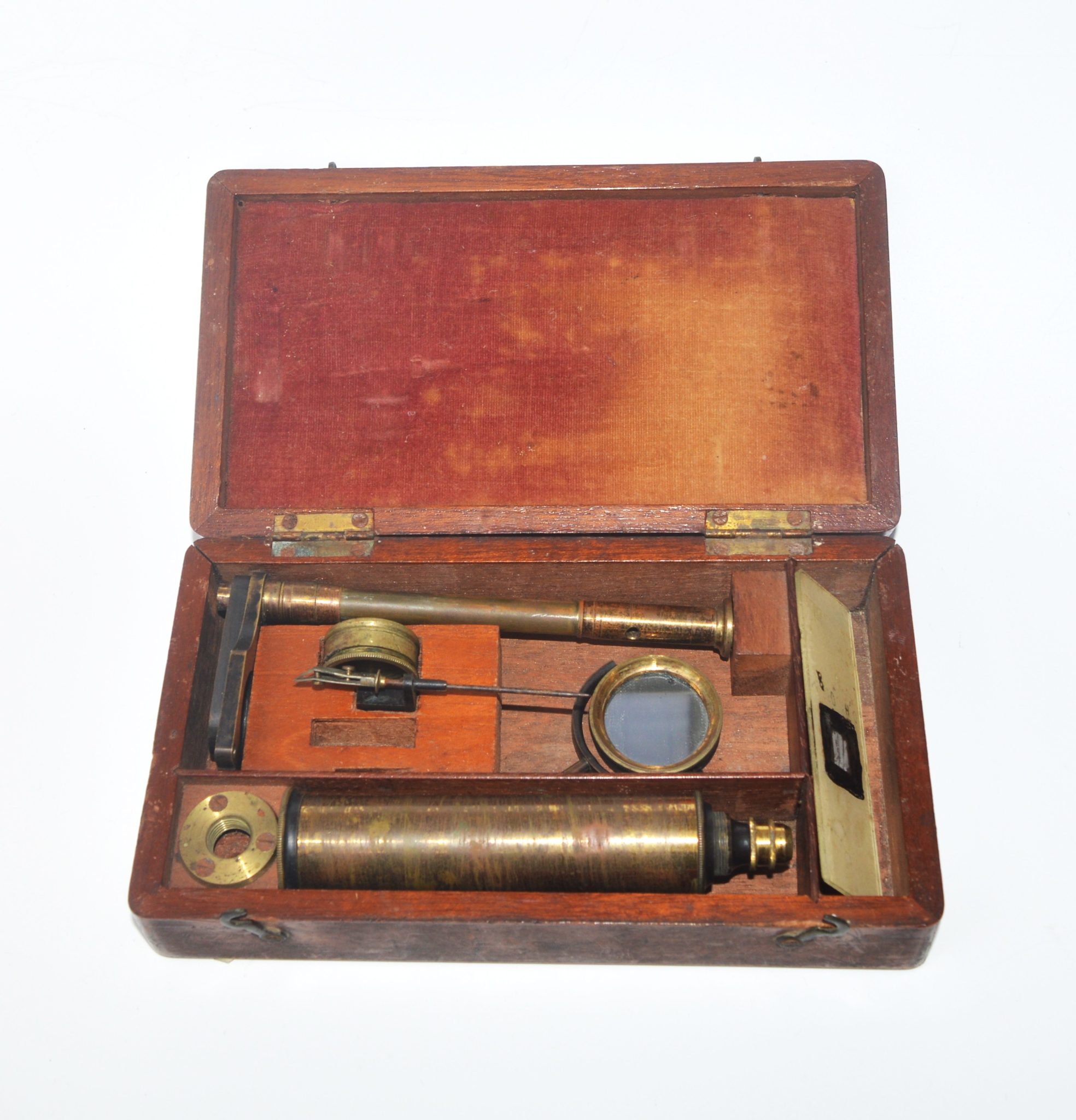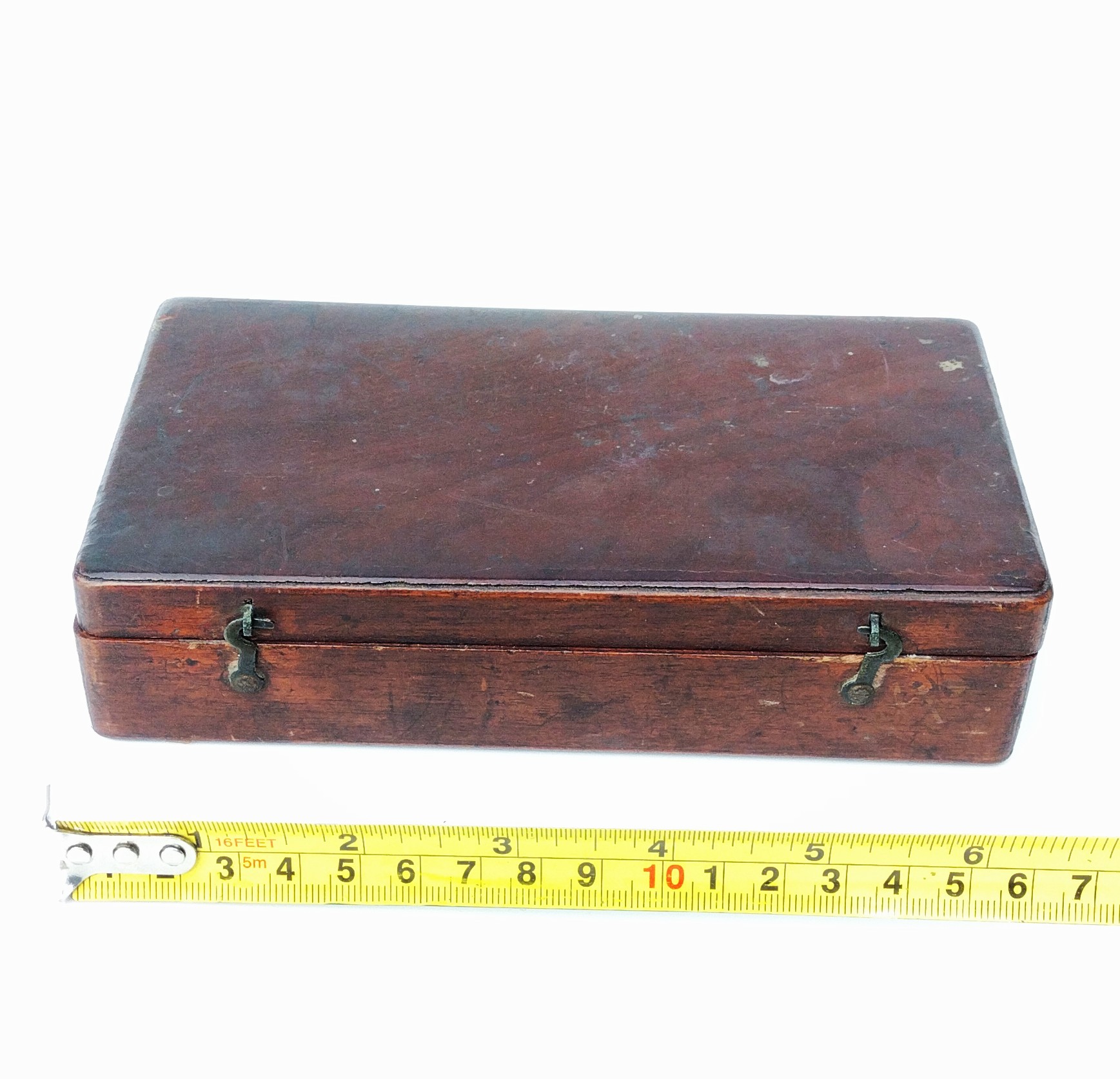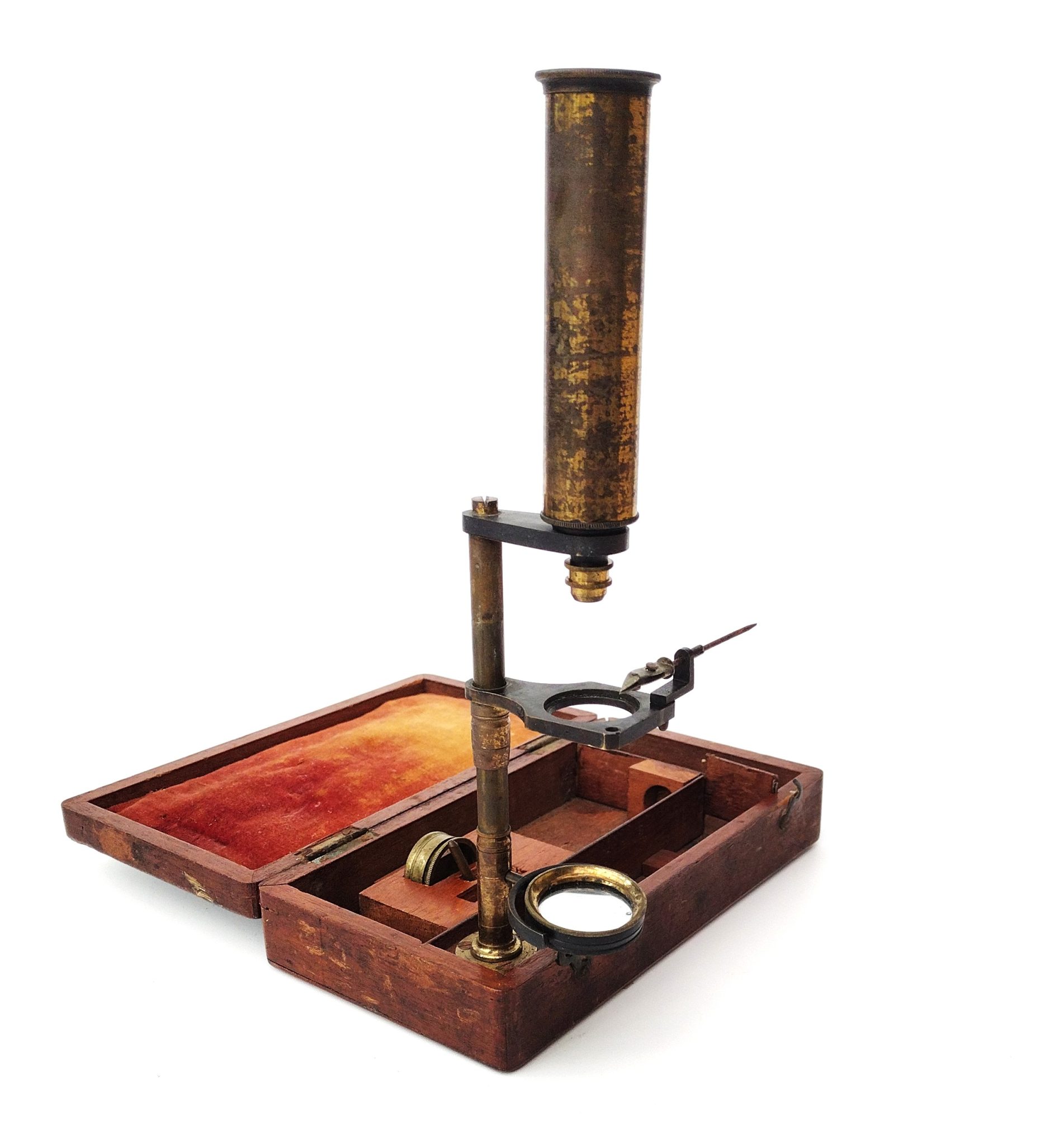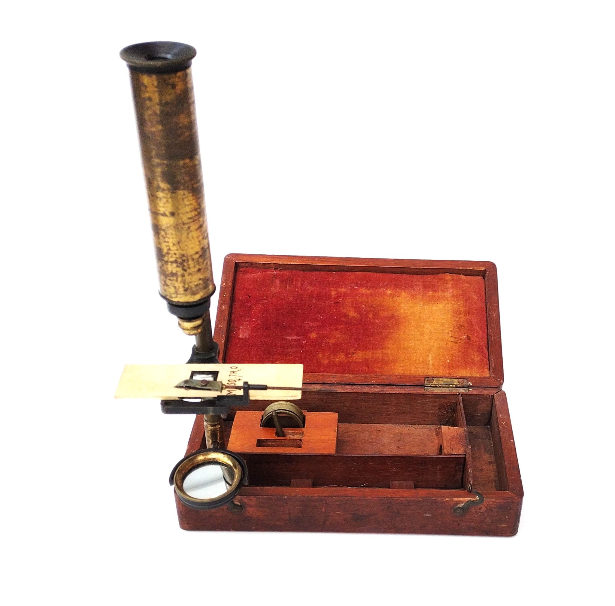 The case measures just over 6.5 ” ( 17 cm ) long and the height of the microscope in its working position is 9.25″ ( 23.5 cm ) measured from the bottom of the case.