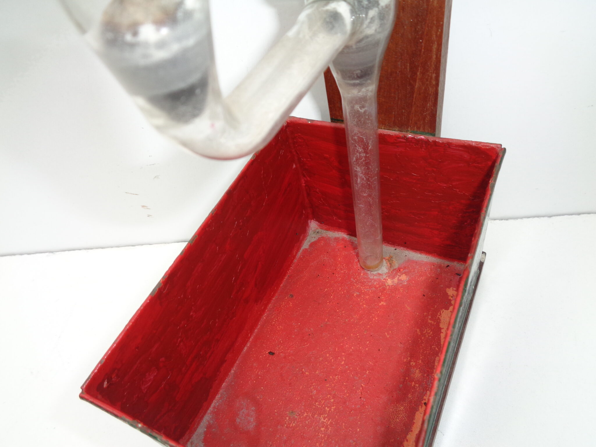 Teaching model of a hand pump, approx. 100 years old, in good working order and in good condition. For safe and damage-free shipping, the glassware can be easily removed. It will be sent by registered mail and well packaged.