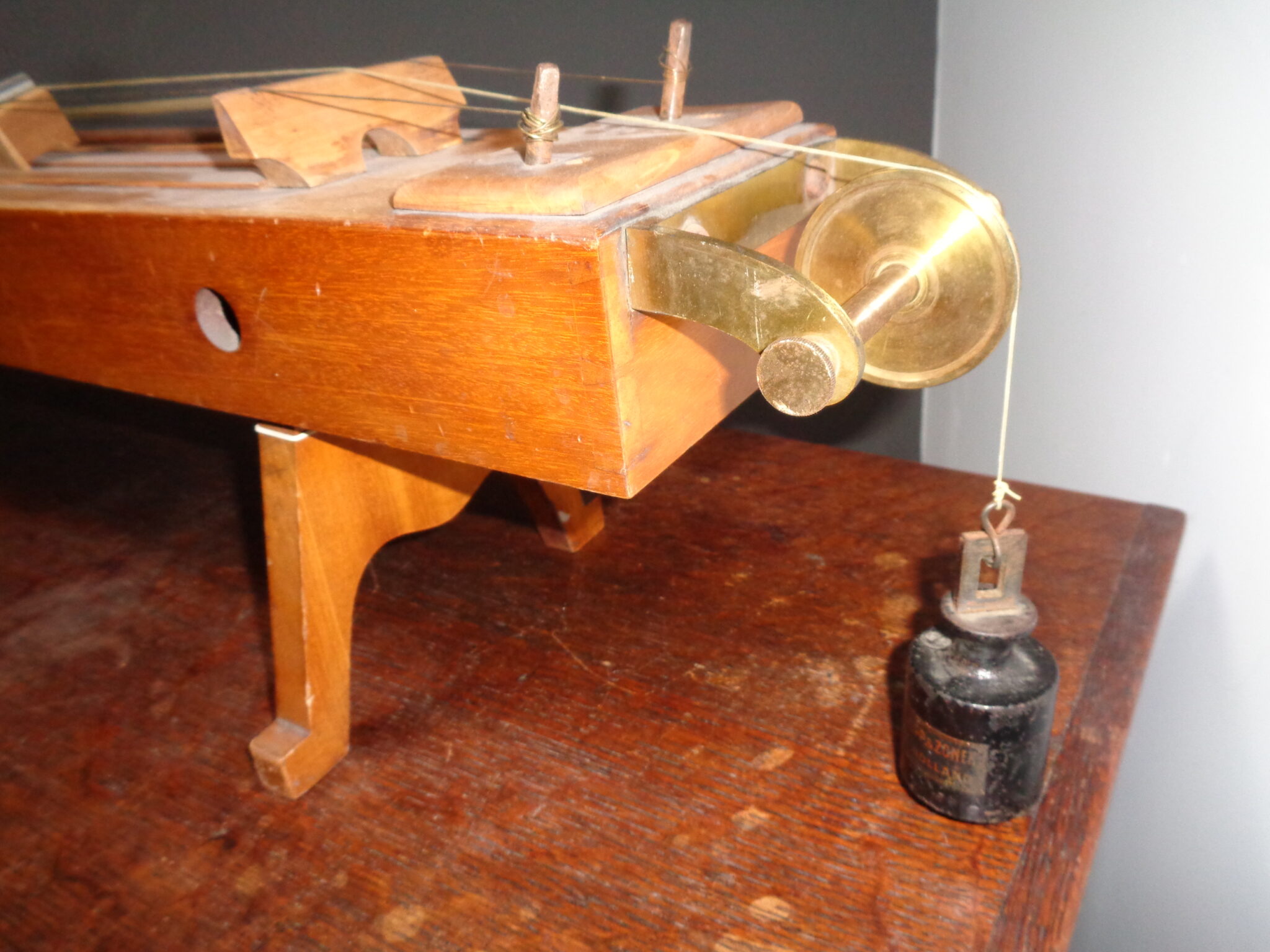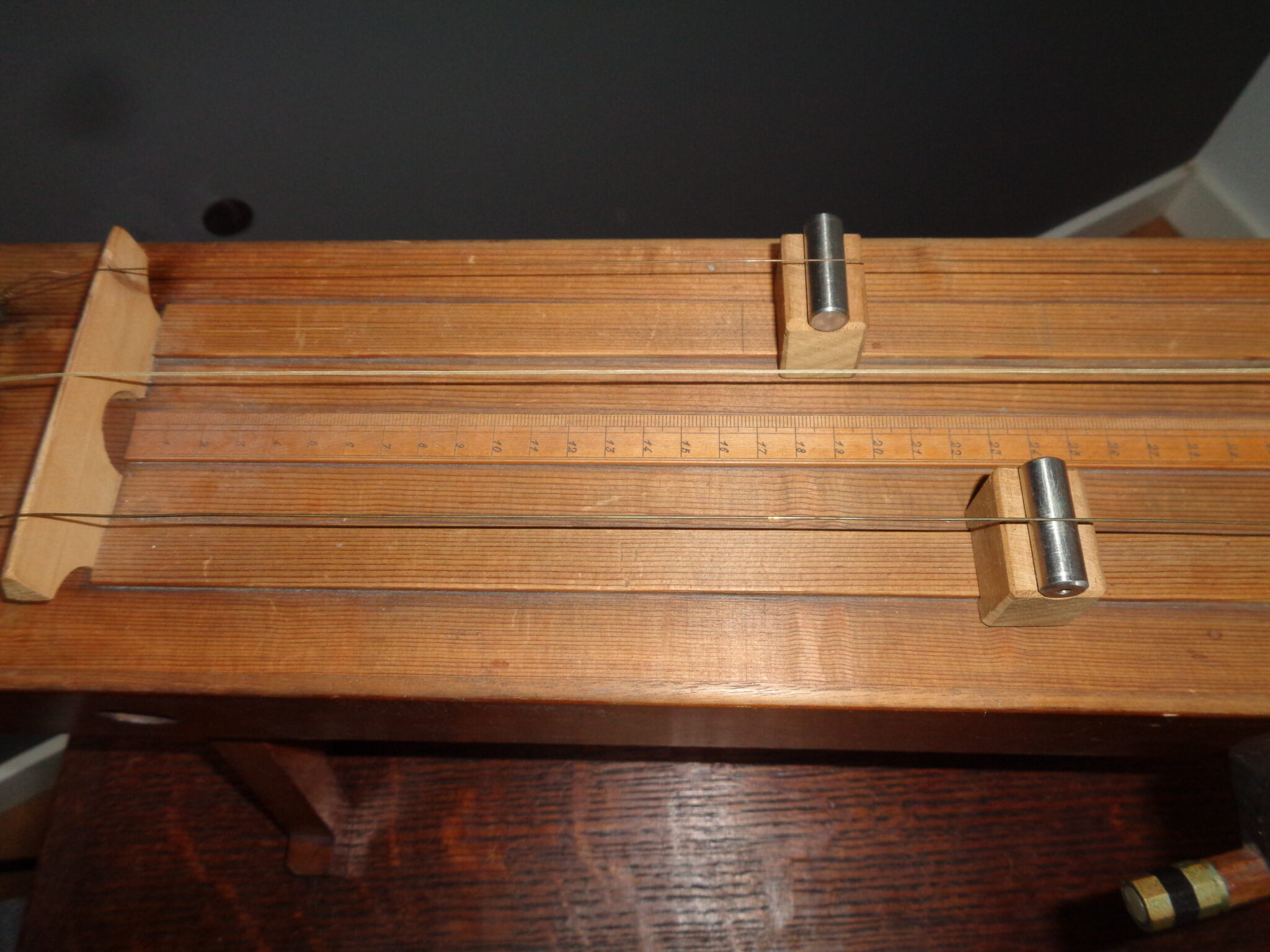 The monochord is the instrument that Pythagoras and other theorists used to study the relationships between string length and pitch, and between pitches themselves. It is still used today as a teaching tool. It consists of an elongated sound box with a number of strings stretched across it. There are often two strings, tuned in unison with tuning pegs, and a third string whose tension is controlled by a pulley with weights.