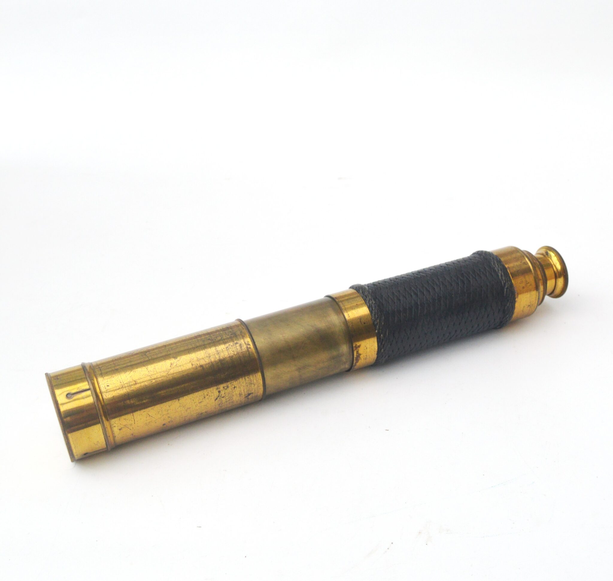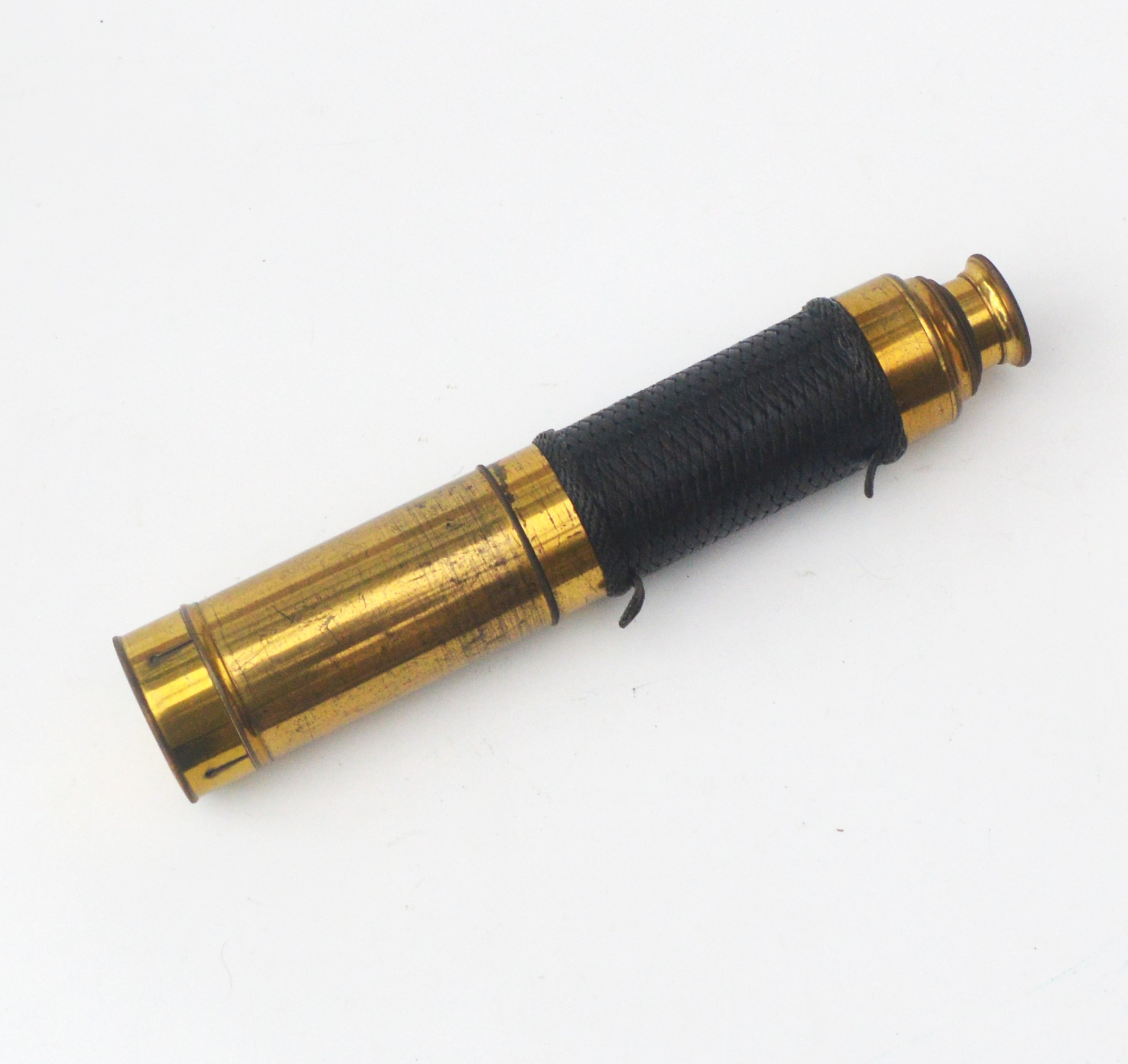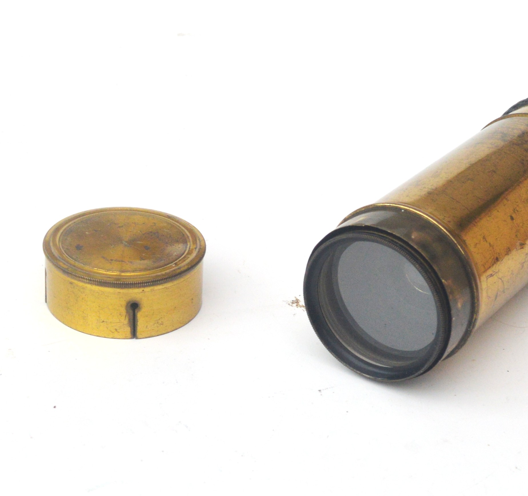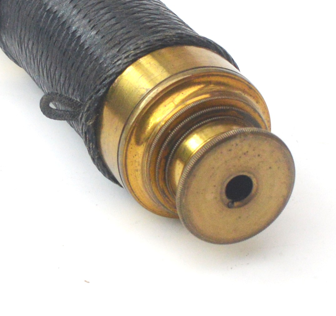Unsigned, 10.5 inches long when closed, 30.25 inches fully drawn with a 1.5 inch main lens.