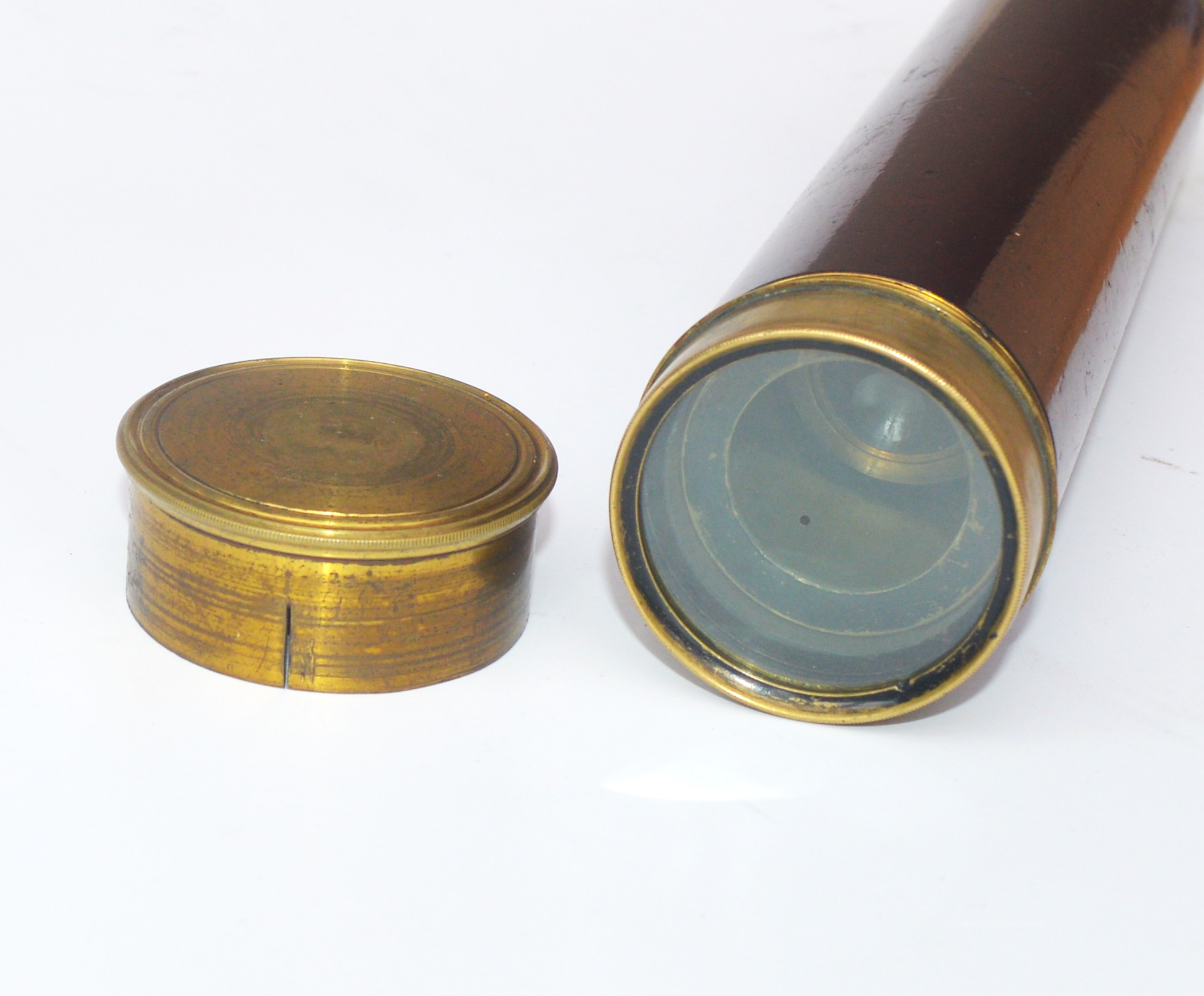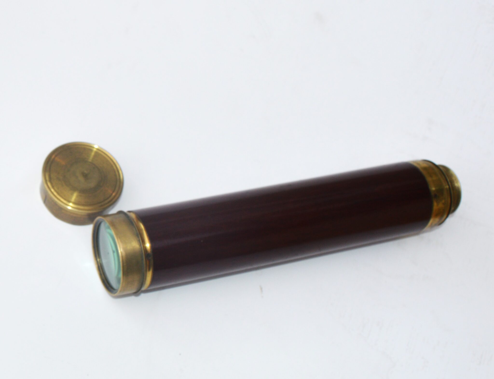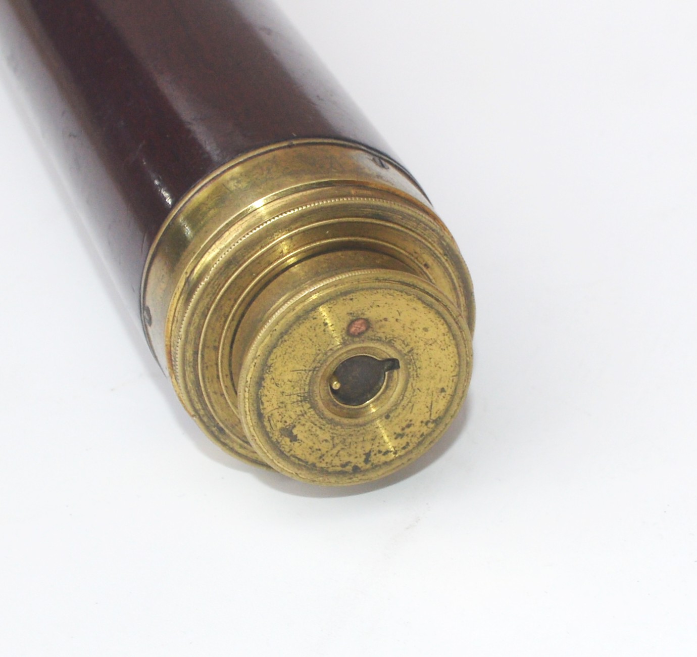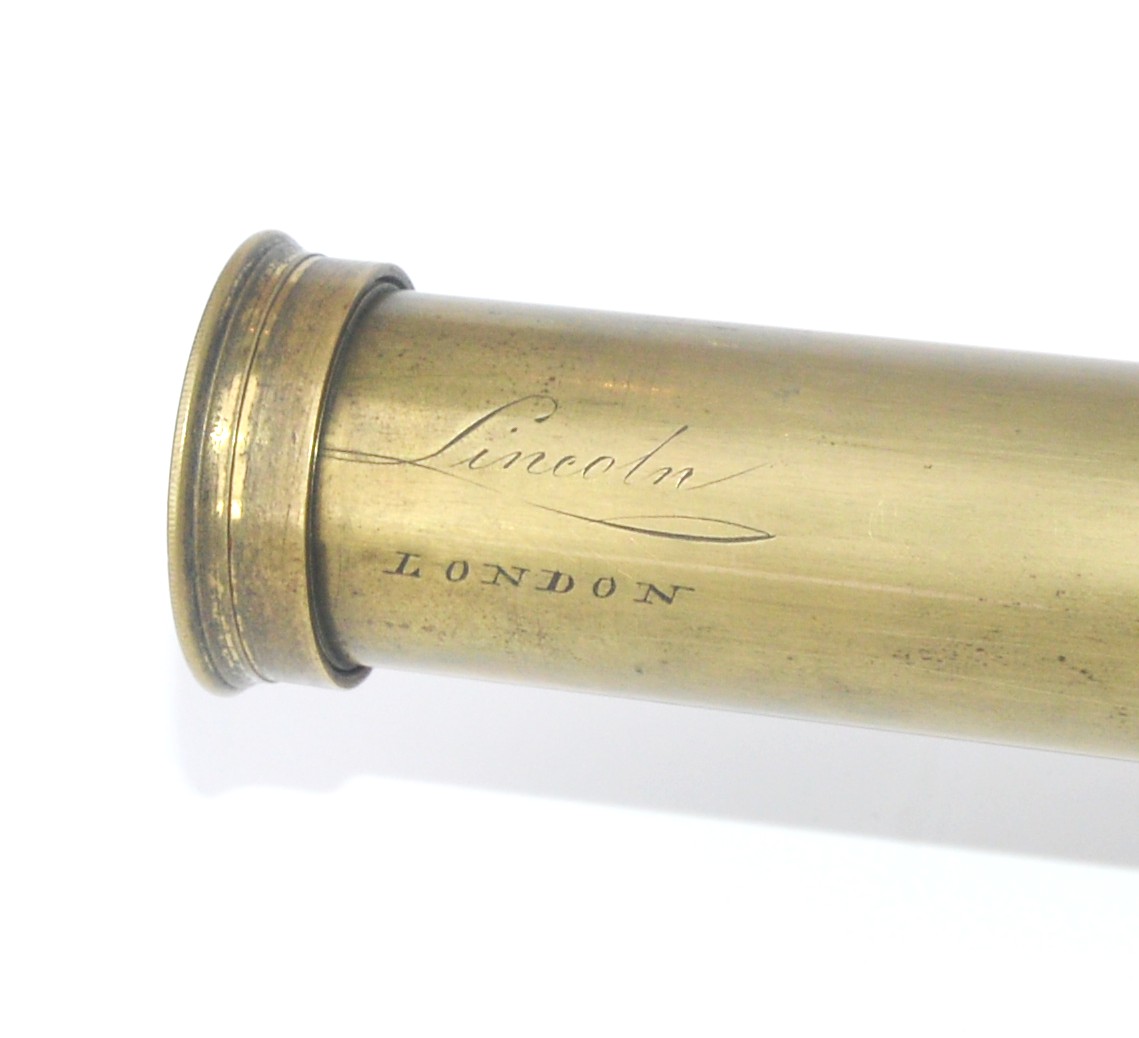 SOLD – A three draw, mahogany barrelled telescope engraved from the off side ( from the eye piece), ‘Lincoln, London’, and additionally engraved with the initials, ‘H.G.B.H.’