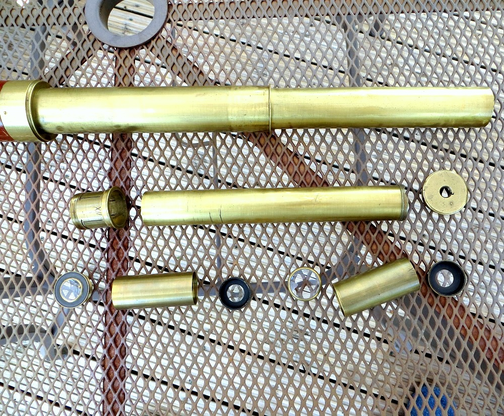 I first started using a telescope in the 60s, to identify aeroplanes arriving at Yeadon airport, in Yorkshire. Then I started to collect and restore vintage brass scopes in the 1990s. The collection boomed later, in the early days of the internet, rising to around 300 in number. Since then I have made a lot of friends via the internet, advising them on how to identify, date or repair their scopes. At the age of 74 I need to disperse these wonderful bits of engineering history, because they still work today as well as they did 200+ years ago! That is the fascination....Some of my collection have already been sold to collectors spread around, in the UK, USA, Ireland, Israel, France and Germany. Several have been returned to the UK descendants of the people who made them, or relatives of their previous owners, because they found the stories on my website. Now the collection needs to be dispersed more systematically. If you are looking for a specific telescope, just ask, maybe I have one! If you want better pictures of the telescopes shown here, these can be emailed. Nick Denbow, based in Alresford, Hampshire: contact via email on [email protected]