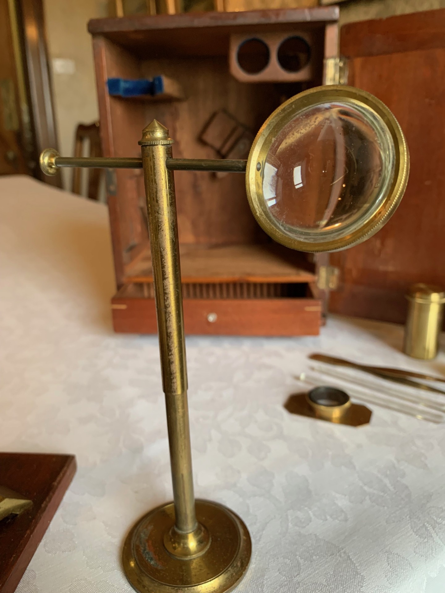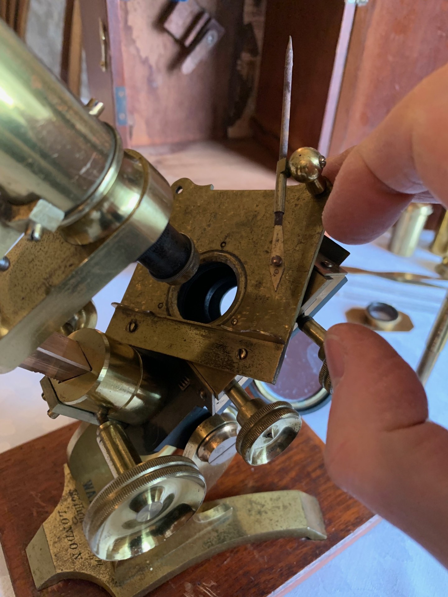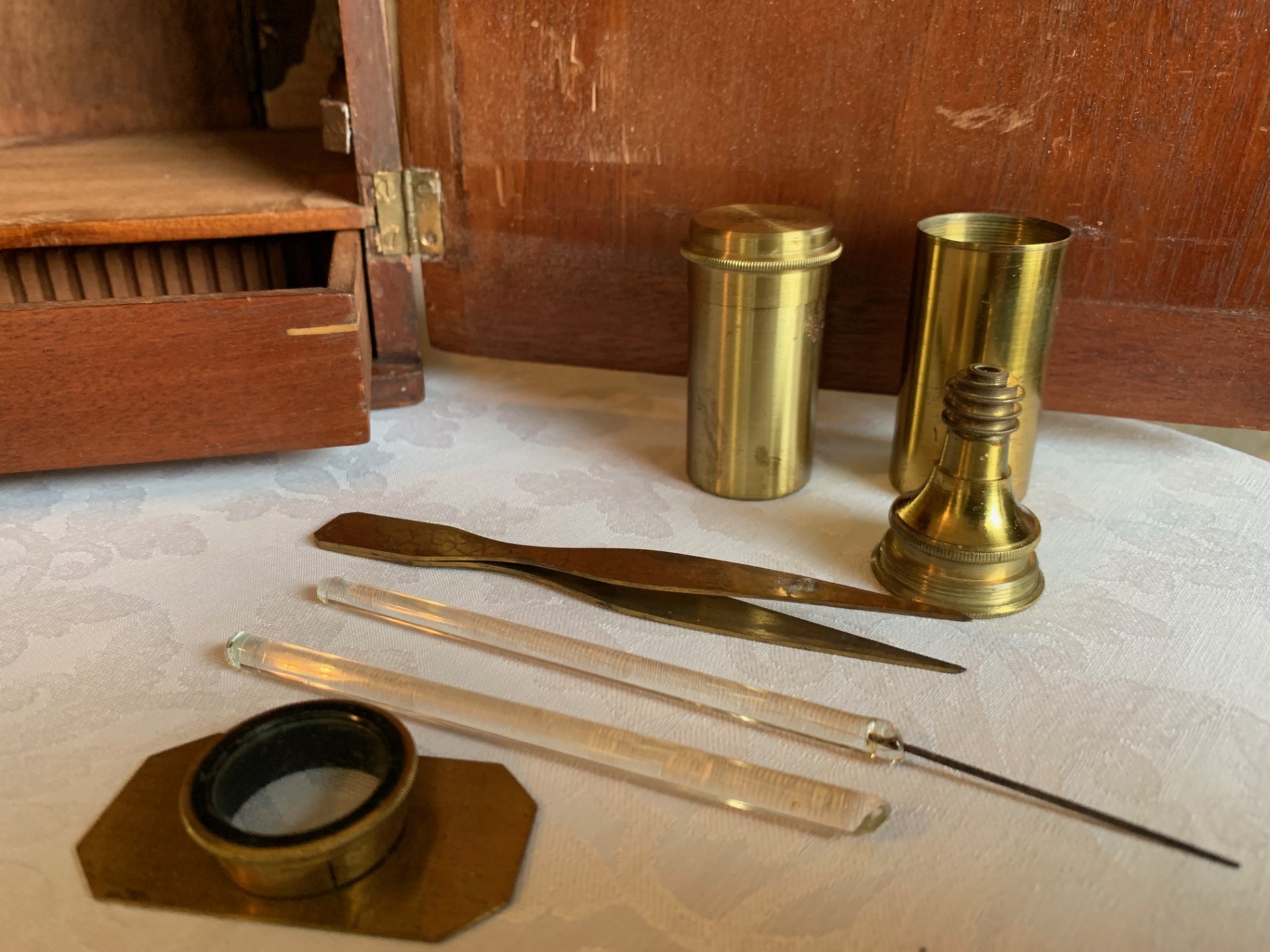 Owing to the weight and delicacy of this antique microscope and its case, it will be partially dismantled, carefully wrapped for shipping and dispatched by insured courier upon receipt of cleared funds.