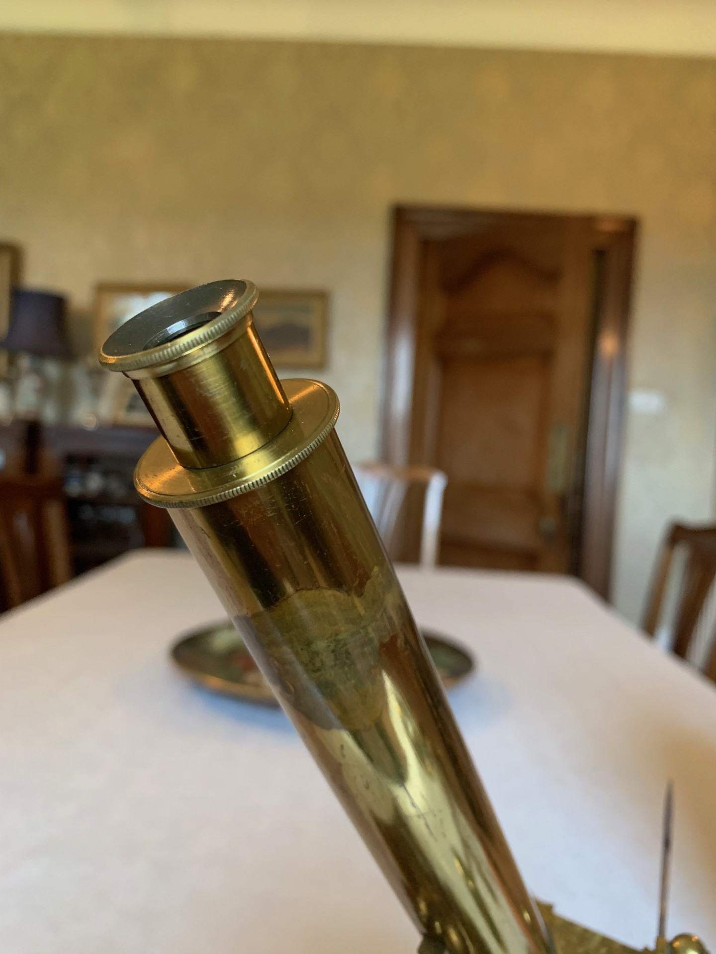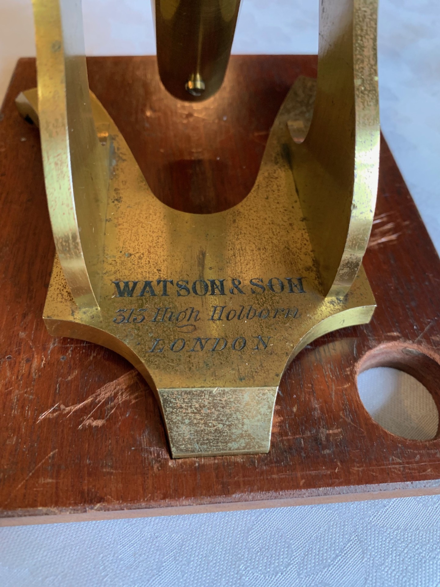 This early example of a late Victorian instrument by Watson & Son is in pretty good cosmetic condition for its age, with only light patination and no doubt quite a back story in light of its assumed many previous custodians. It’s a survivor from the last 150 years or so – the lacquered brass-work catches the light really well as I hope the listing photos illustrate and it’s also complete with original case. The instrument’s look and feel is pretty solid in that’s it’s fashioned from brass, giving it a quality feel and suitability for display, being compact, it’s an ideal and useful desk-top accessory.