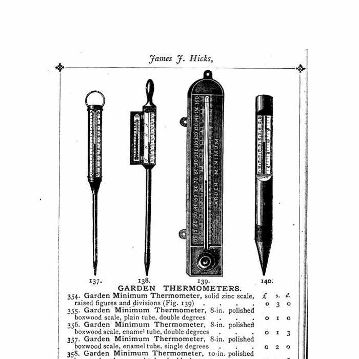Exotic plant gardening in Britain increased dramatically from around 1780 and grew exponentially throughout the early to mid-Victorian period. The onset of enclosed kitchen gardens and glass houses required gardeners and horticulturists to more accurately monitor soil temperatures to ensure safety of vulnerable plants and to monitor composting temperatures. In differentiation to soil thermometers, these hot-bed thermometer were therefore provided with scales which would allow for higher temperature readings.