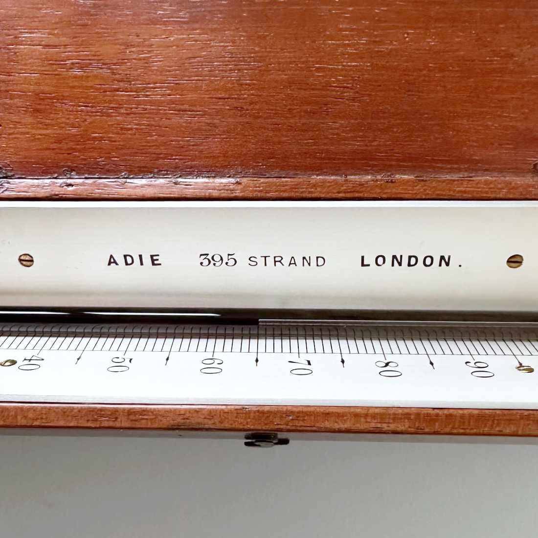 The maker, Patrick Adie set up his business in 1844 at 395 The Strand, after serving apprenticeships with both his Father’s famous Edinburgh firm (Adie & Son) and the gas engineers, Milne & Son and specialised in the production of meteorological instruments. Through contacts made during his apprenticeship and training at Sir Thomas MacDougall Brisbane’s observatory near Kelso, Patrick made the close links with John Welsh Superintendent of The Kew Observatory that would eventually lead to the creation of the famous Kew Pattern marine & station barometers which were used extensively by The Met Office for years to come, a fitting development to his father’s earlier invention of the sypiesometer.