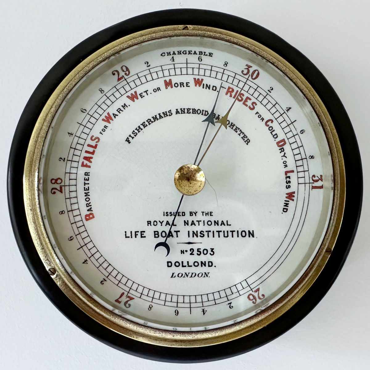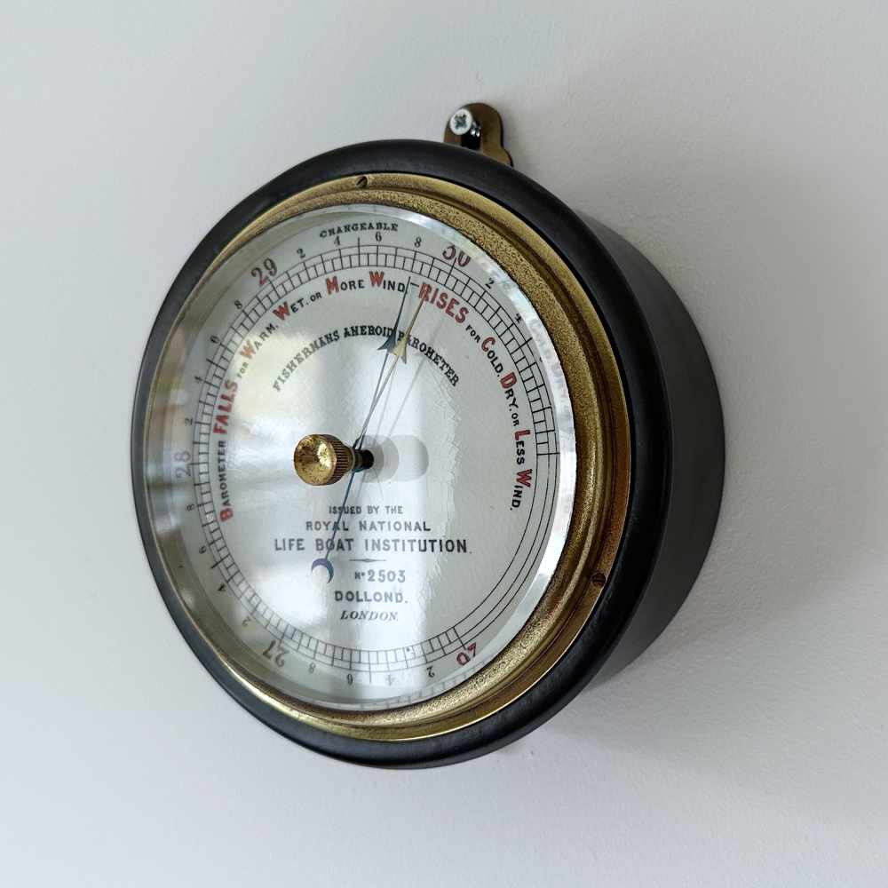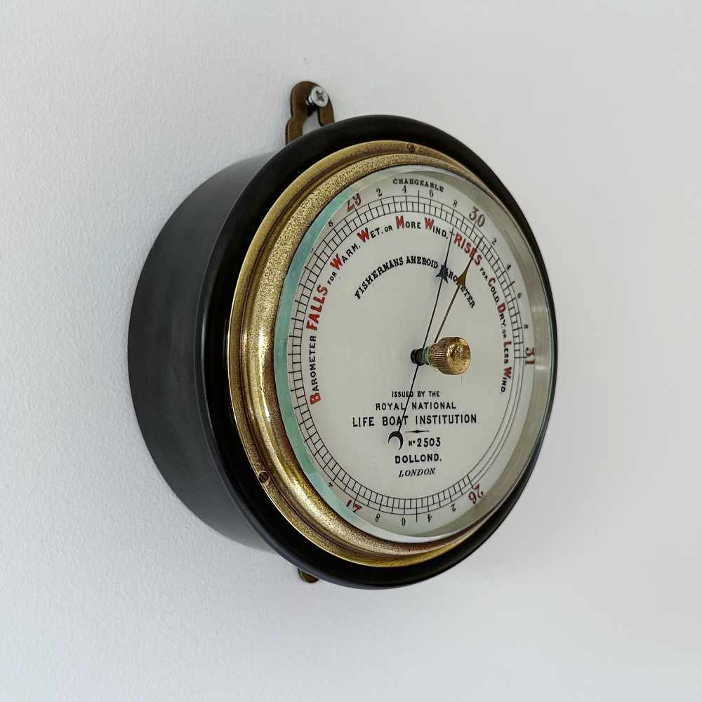 For sale, a late Victorian Fisherman’s Aneroid Barometer by Dollond of London issued by the Royal National Lifeboat Institution (RNLI) – No. 2503.