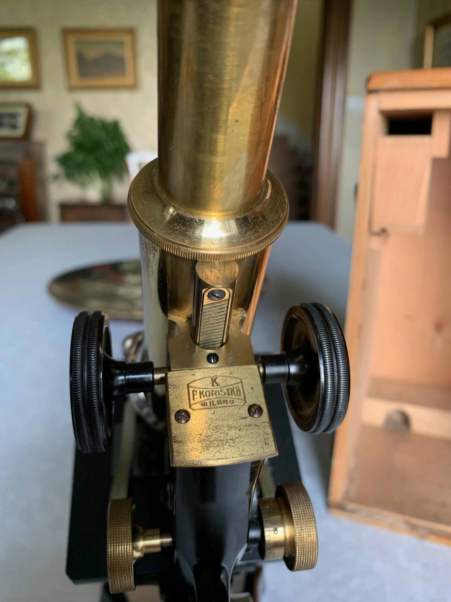 Vintage F. Koristka of Milan – Brass Monocular Microscope – circa 1920s, Cased