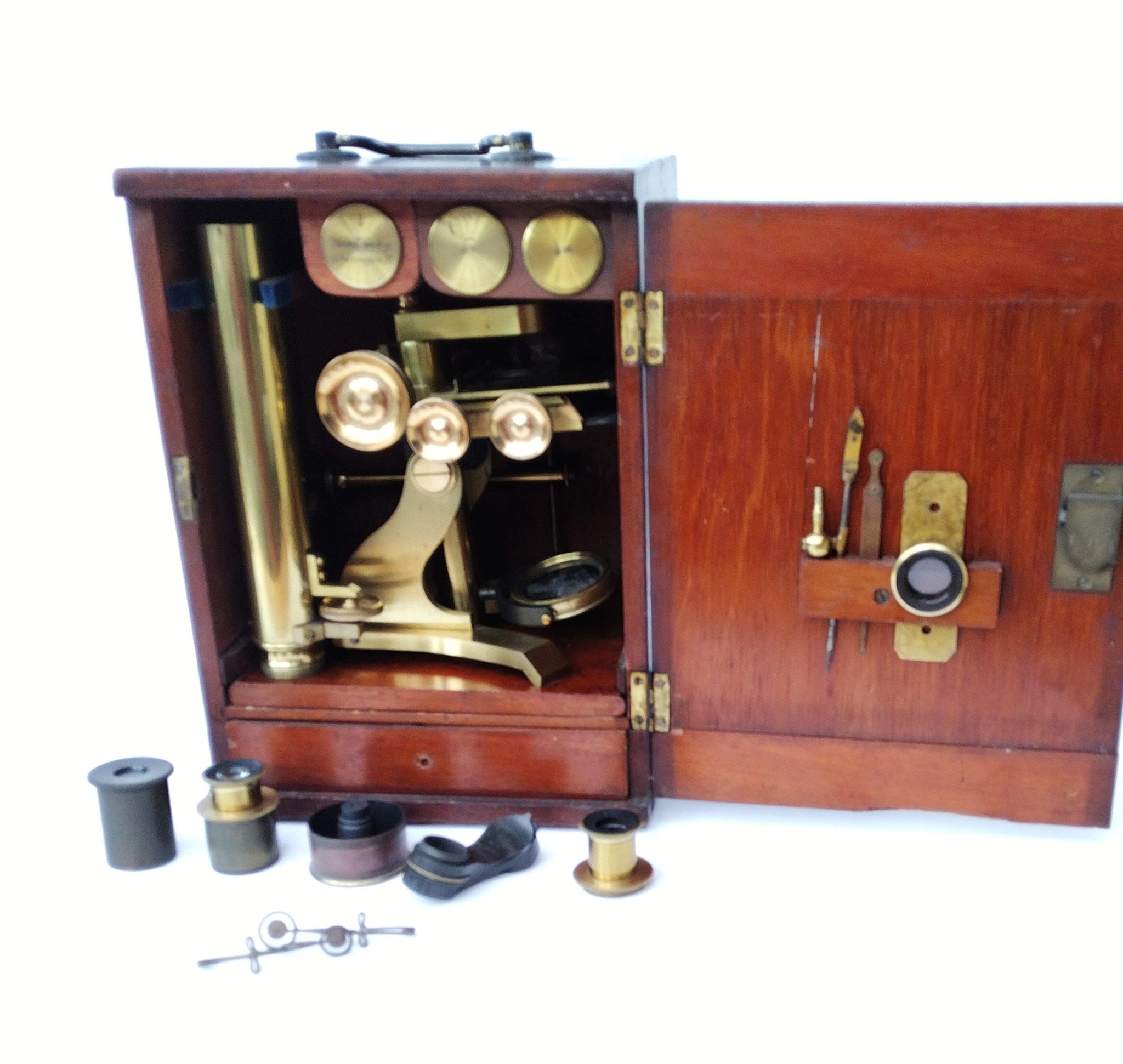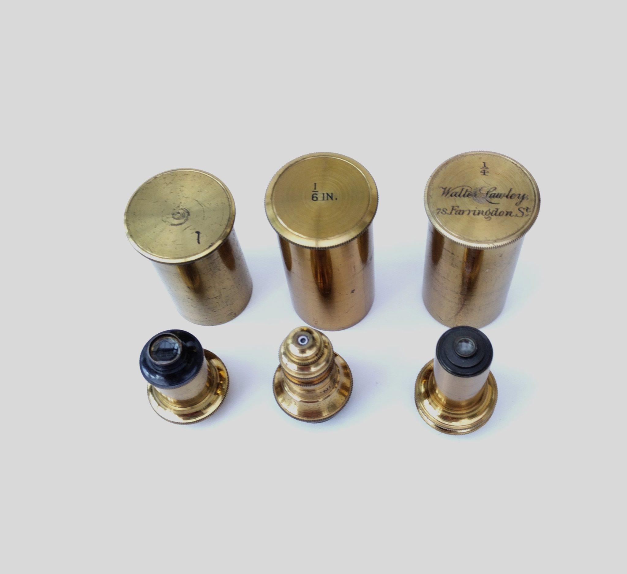 1/4″ objective in can (the lid engraved ‘Walter Lawley, 78 Farringdon St’.